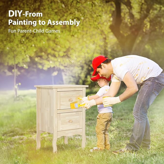 - 【Unfinished Wood for Color DIY】White/gray/black/brown nightstand? It's up to you! Take a moment to enjoy the stain or paint process of this unfinished wood nightstand, we sincerely invite you and your kids to complete this fantastic parent-child game by painting and assembly which can promote relationship and relieve stress. We believe you'll be amazed at your labor when you're done