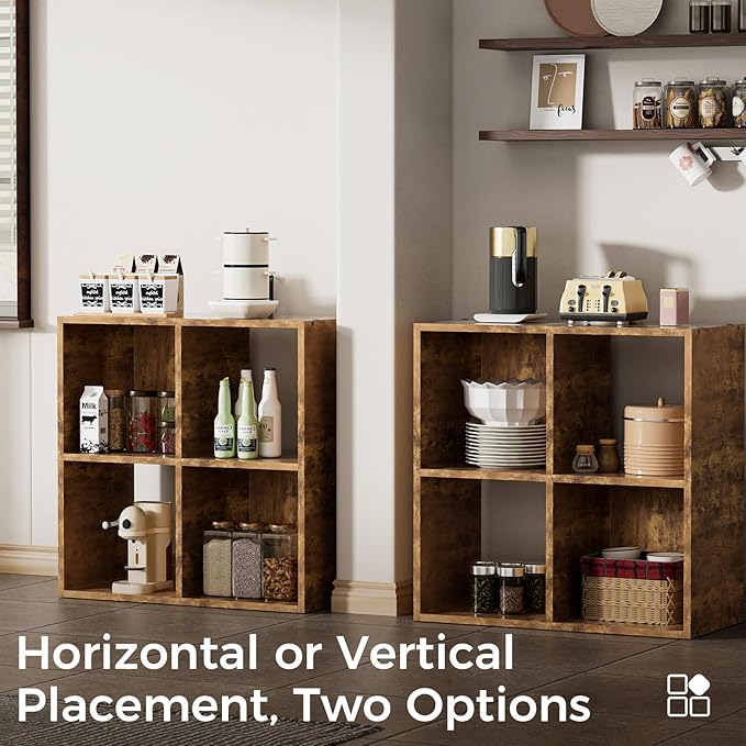 COMHOMA 4 Wood Cube Storage Organizer with Open Back and Removable Back Panels, 11In Brown Cube Storage Bookshelf, Cubicle Shelf Bookcase for Home Office Bedroom Living Room, Vertical or Horizontal