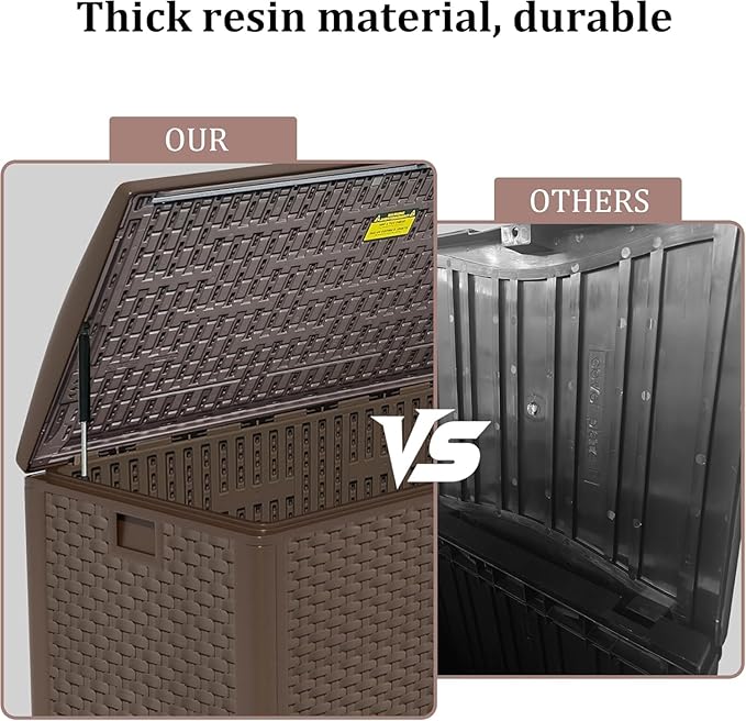 - Stylish Design for Any Outdoor Space With a clean, timeless look, this deck box complements modern, classic, or rustic outdoor decor, enhancing patios, backyards, balconies, and pool areas. It seamlessly blends with patio furniture sets, outdoor benches, and garden decor while offering practical waterproof storage for cushions, tools,A perfect mix of form and function for any outdoor living area.
