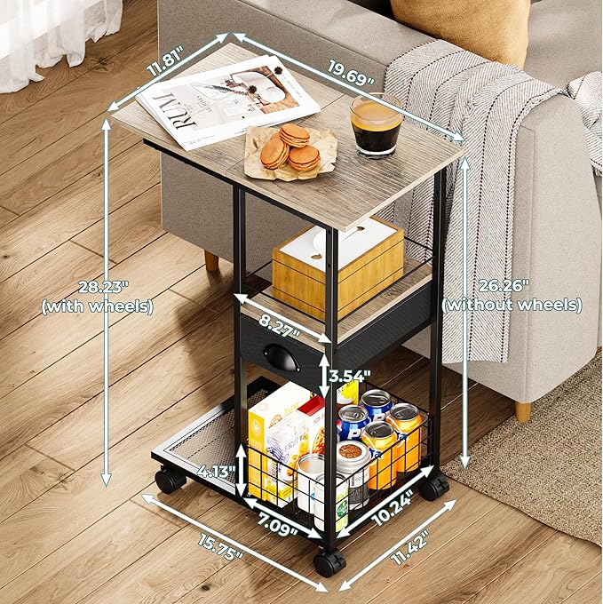 - Move Work or Relaxation Anywhere : This C-shaped rolling side table slides easily under your sofa or bed to create an instant workspace or coffee spot. Four smooth wheels (two lockable) let you move freely and stay stable when needed — perfect for small spaces, dorms, or cozy bedrooms.
