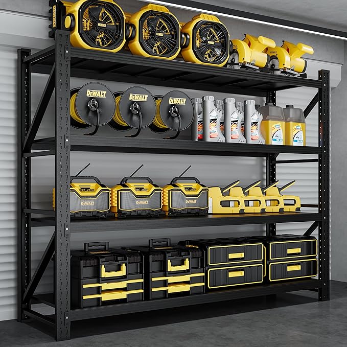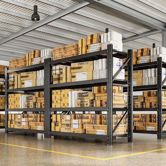 - 【High-quality Materials】Our heavy-duty shelves have a total weight capacity of 7000 pounds. To withstand extreme weights, our metal racks feature thickened vertical columns and heavy-duty beams to enhance load-bearing performance. These shelf units and storage are resistant to warping or deformation. The sturdy cold-rolled steel structure ensures reliable use for many years in garage storage shelves or commercial storage environments.