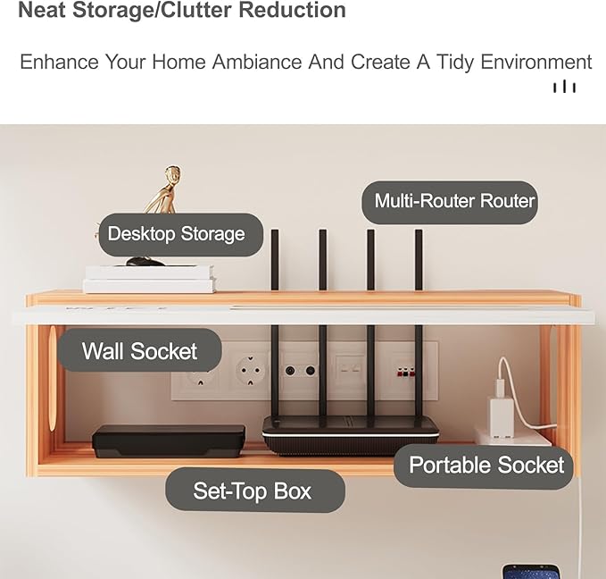 - 【Material】: Made of thickened wood-based panels, this wifi router storage cabinet is not only durable but also easy to clean and maintain. Simply wipe with a damp cloth to keep it sparkling clean