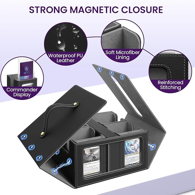 - Portable & Convenient: Equipped with built-in dice tray and a sturdy carry handle, this commander deck box is perfect for tournaments, game nights, or storage at home, ensuring your collection travels safely wherever you go.