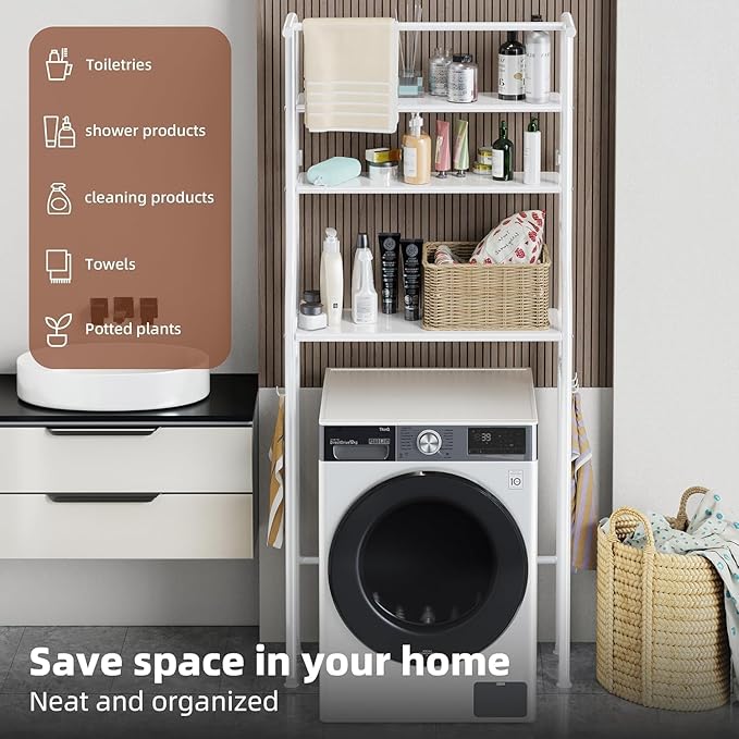 - ✅【Versatile Storage Solution】: This 3-tier laundry room shelf offers ample storage space to accommodate towels, detergents, and other laundry essentials. Designed to fit most standard washing machines and dryers, it allows for customizable height adjustments