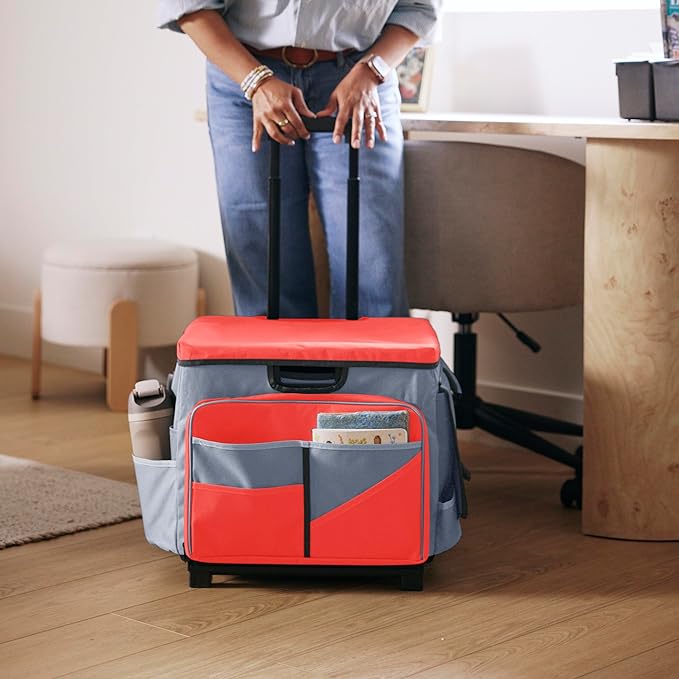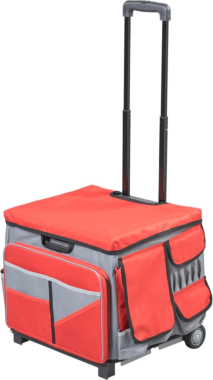 Mobile Utility Cart with Storage Organizer Bag, Rolling Cart, Red/Grey
