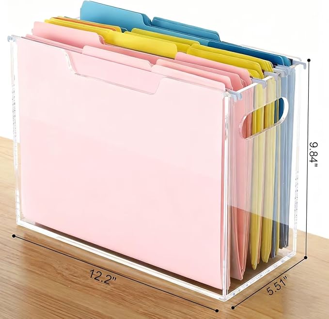 - 【Modern Acrylic File Holder】 This versatile acrylic file organizer is designed to hold magazines, books, documents, and letter-size hanging file folders. Keep your files neat, accessible, and stylish with this clear acrylic file box
