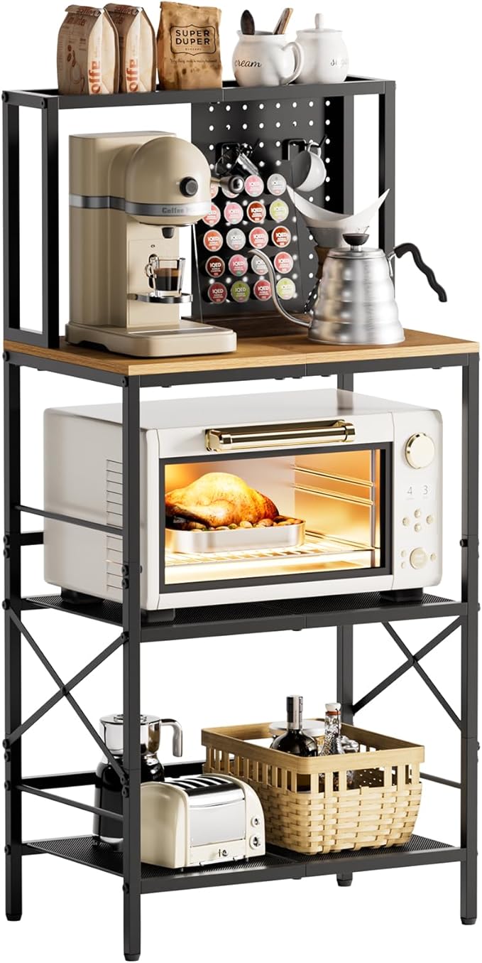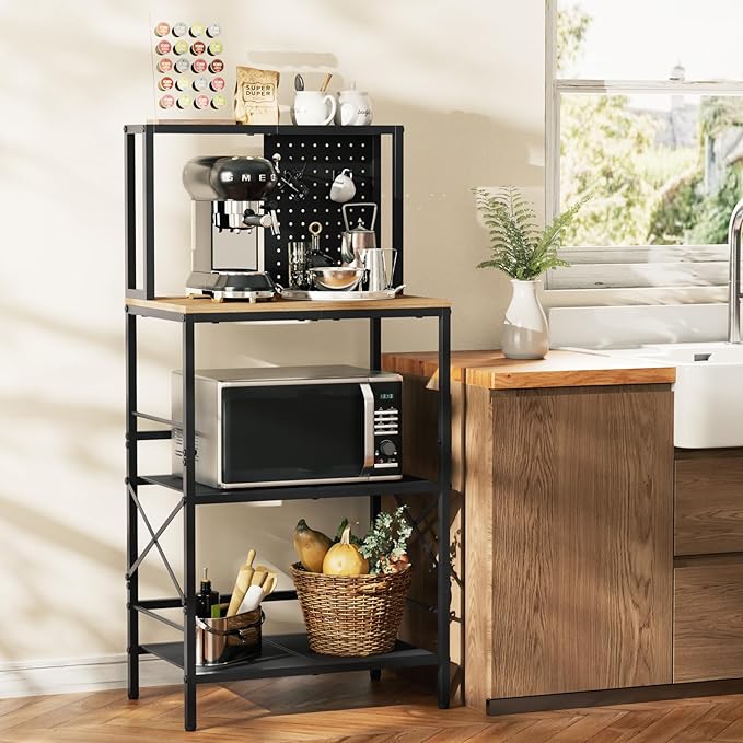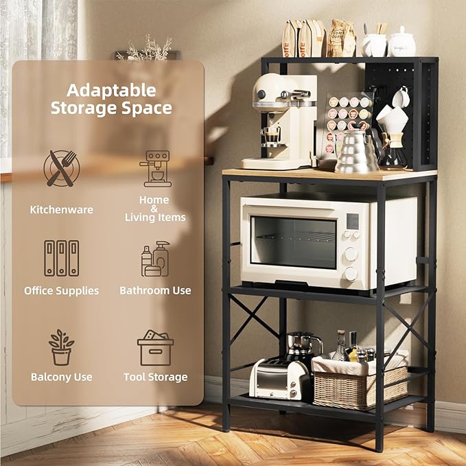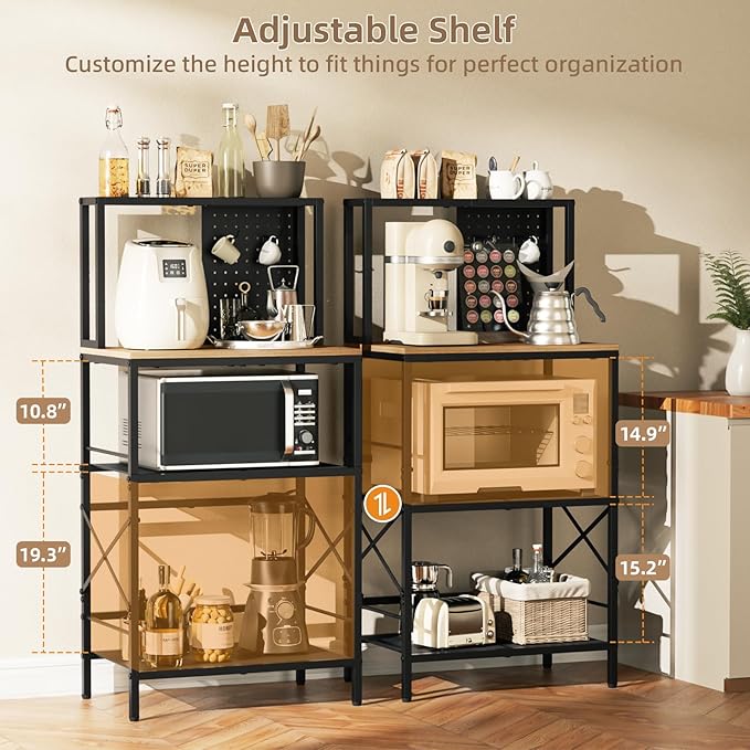 - 【Practical Rack for Any Room in Home】This isn't just a bakers rack with storage! It can transform your kitchen or dining area into an efficient coffee bar station, a sturdy rack in the garage, a plant stand for your balcony or a storage shelves for office and more. The ultimate organizer rack for your entire home, meeting all your storage and style needs.
