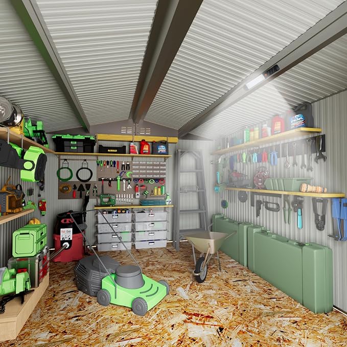 - 【Great Value Extras】 This metal storage shed comes with a solar light and work lights, offering unbeatable value with all the extras you need for a complete setup.