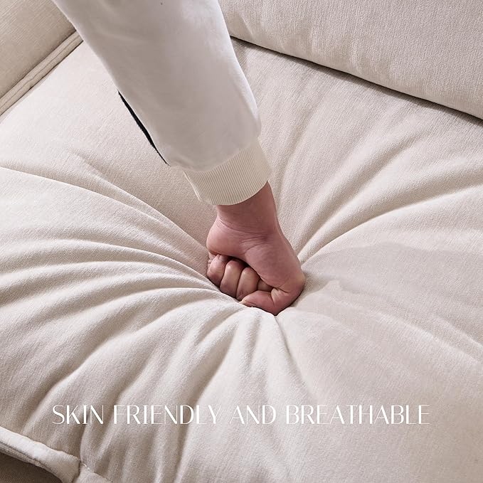 - 【Luxurious Comfort meets】Crafted with luxuriously thick chenille fabric that feels soft, this sofa combines premium texture with practical innovation. The blended fabric technology ensures fluffy resilience, maintaining its shape even after prolonged sitting. Whether curled up on a single module to binge-watch shows or leaning against the L-shaped corner to nap, every curve of the design provides feather-light support that cradles redefining relaxation in modern living spaces.