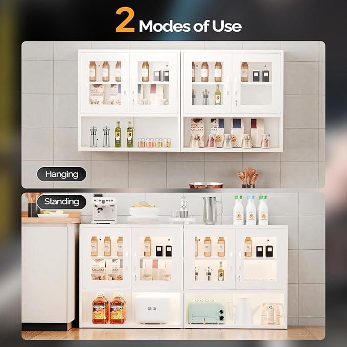 - 【Convenient Lighting】Equipped with a magnetic sensor LED light, this cabinet illuminates your space, making it easy to find what you need, even in dim conditions.