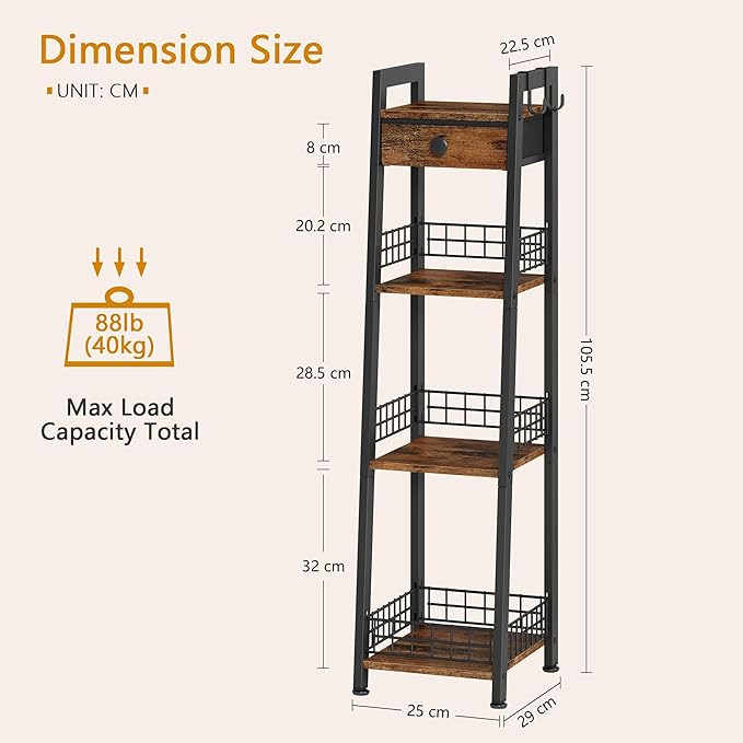 - With Drawer - The 4-tier narrow bathroom Storage shelf is enough to accommodate a lot of your items, guardrails on the edges can effectively prevent items from falling, top drawer is convenient for you to store small items, equipped with 2 hooks, perfect for hanging towels. Gewudraw narrow ladder shelf will keep your bathroom organized at all times!