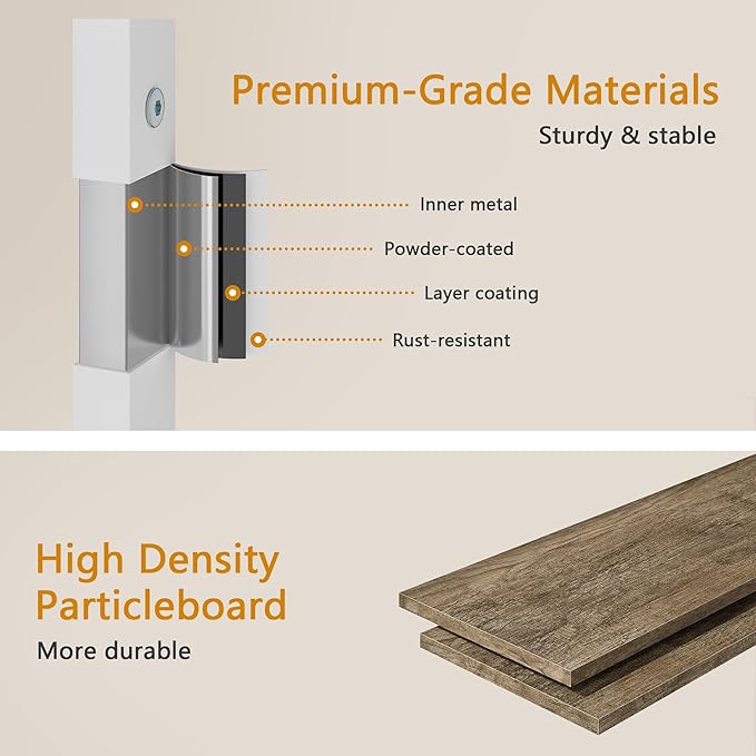 - Durable and Sturdy - Made of thickened particle board and sturdy metal frame, waterproof, rust-proof and easy to clean, ensuring long-term use. 4 adjustable feet ensure stable use and prevent scratching of floors.