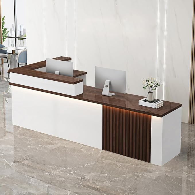- Stable and Strong: Our Front Desk Reception Counter is made of multi-layer solid wood board with a strong structure. Receptionist desk with counter modern reception desk surface has excellent weather and water resistance for long-term use.