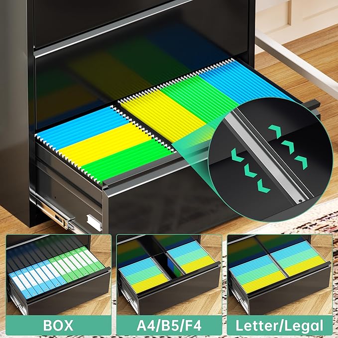 - 【Additional design】Black office lockable steel file cabinets with locks have excellent quality ball bearings that open and close smoothly and with little sound. The file cabinets are of excellent quality to ensure a quiet environment and extended use. Metal horizontal file cabinets have anti-slip mats to protect the floor. Bringing you comfortable using feeling.