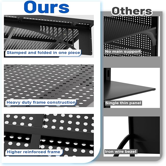 - π Massive 500LB Capacity: Engineered from industrial-grade iron, our EROMMY garage storage shelves deliver unmatched strength. The ultra-dense grid design provides superior support compared to ordinary shelves, preventing sagging under extreme weight. Perfect for storing bulky tools, automotive supplies, and heavy storage bins with absolute confidence.