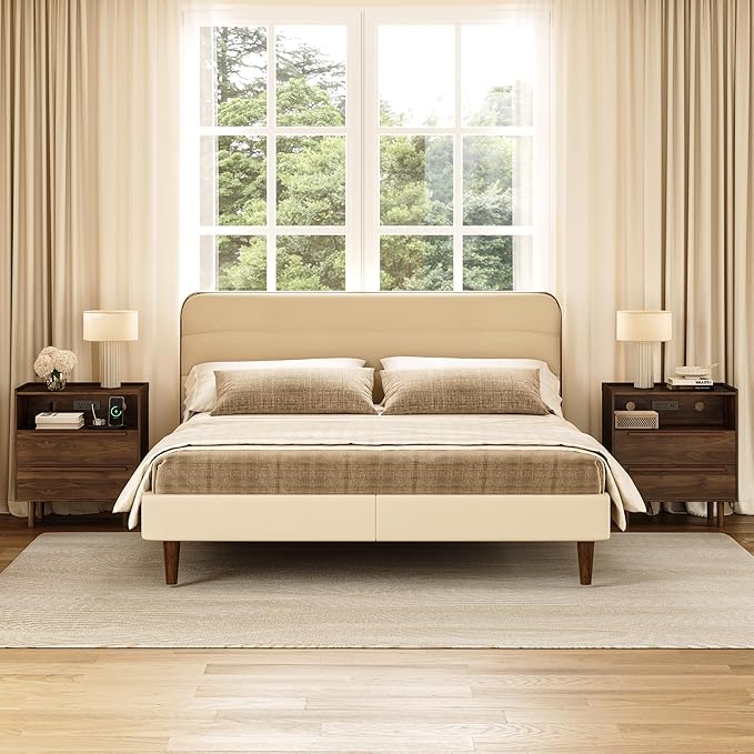 - Integrated Charging & Cord Control: No more reaching behind the bed for outlets. The integrated charging station includes 1 USB port, 1 Type-C port, and 2 AC outlets inside the open shelf, keeping your phone, tablet, and other devices powered without messy visible cords. Dual cable holes at the back keep cables neat and tangle-free.