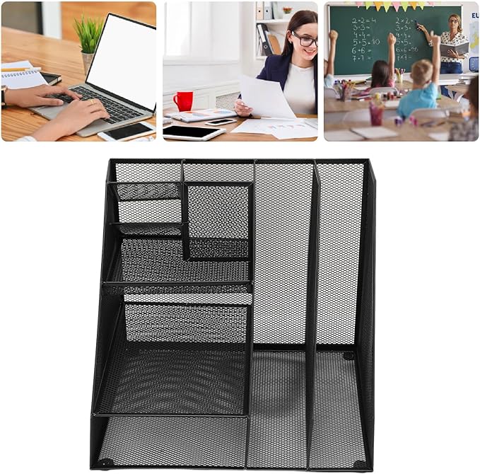 - [VERSATILE STORAGE SOLUTION] This metal mesh desktop organizer is designed to declutter your workspace by combining multiple separate organizers into one cohesive unit. Excellent for organizing small office supplies and documents, it ensures everything has its place. The ample storage space makes it an essential tool for maintaining order and efficiency in any setting, whether at home, school, or the office.