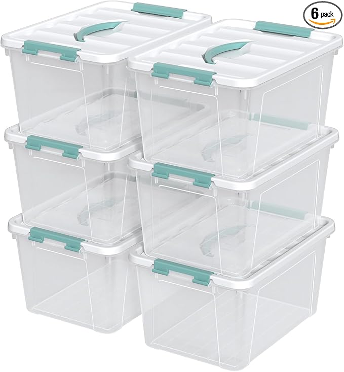 Ramddy 6-Pack 14 Quart Plastic Storage Bin with Handle, Clear Latching Container Box