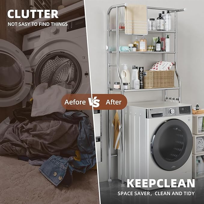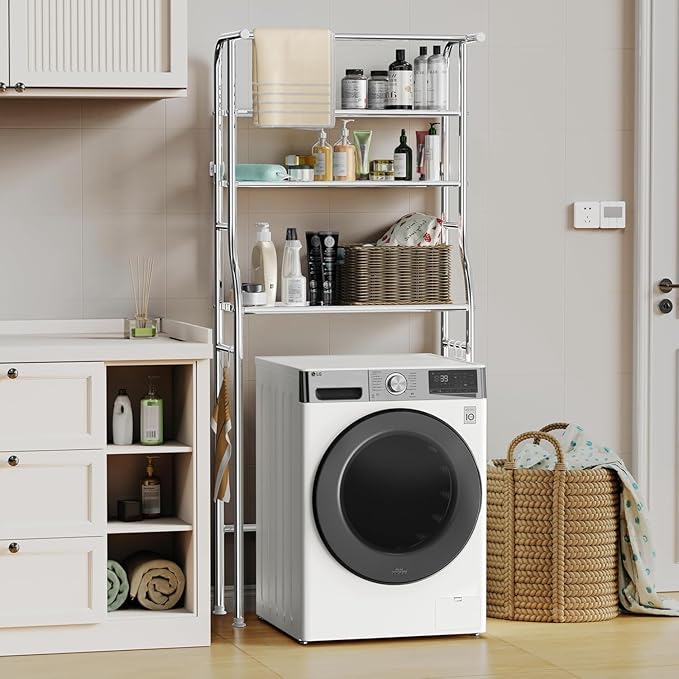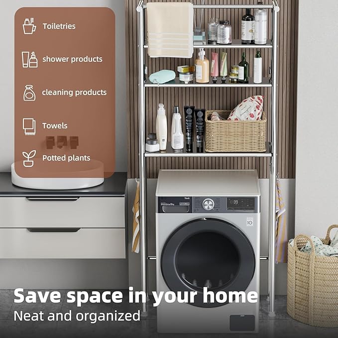 - ✅【Versatile Storage Solution】: This 3-tier laundry room shelf offers ample storage space to accommodate towels, detergents, and other laundry essentials. Designed to fit most standard washing machines and dryers, it allows for customizable height adjustments